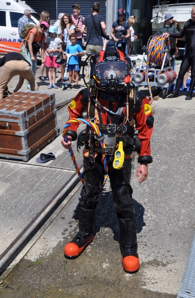 Nous nous entraînons régulièrement pour acquérir de l'expérience sur l'usage du scaphandre à casque.